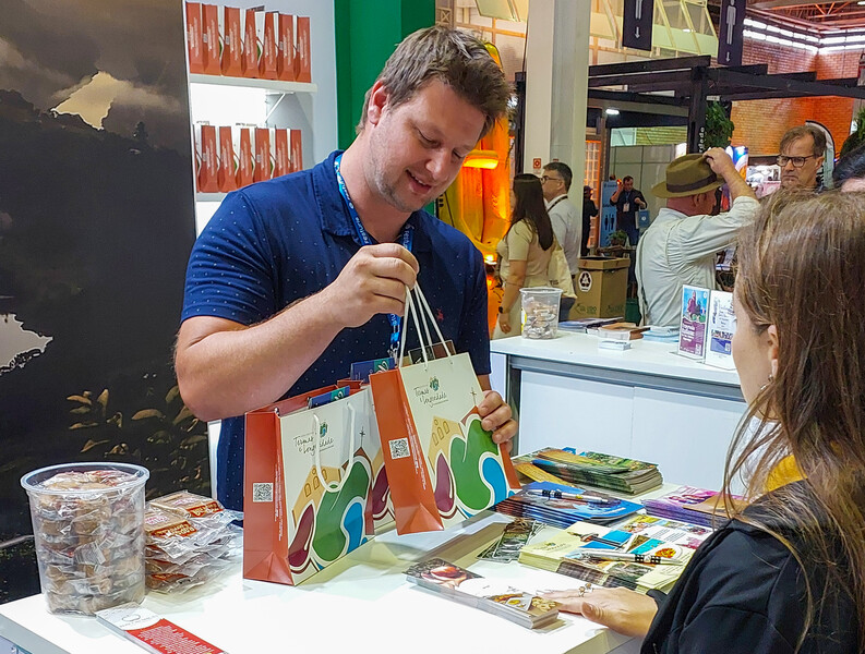 Nesta ocasião, o nosso município esteve representado pelo Secretário de Turismo e Cultura Thomas Tres e pelos empreendedores César Zinda da Rapaduras da Serra Gaúcha e Jones Puton da Slow Tour Brasil. O grupo levou consigo a cultura e os produtos locais disponibilizados pelos empreendimentos cotiporanenses para o estande da Rota Termas e Longevidade e da e da Secretaria de Turismo do Estado, com o objetivo de fomentar o turismo na região.
