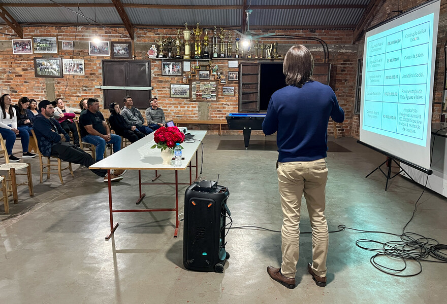 Por meio de números e imagens reais, o conhecimento por parte da utilização dos recursos públicos e a dedicação empenhada em prol de Cotiporã foram repassados pelo Prefeito Ivelton Mateus Zardo.