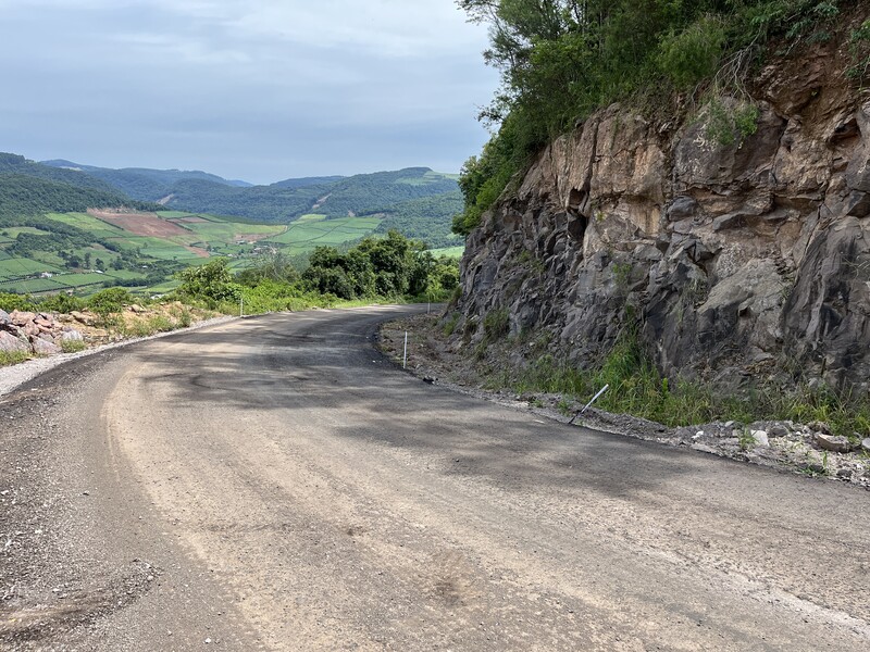A execução dos trabalhos ocorre em dois trechos que foram danificados pelas chuvas de maio e em aproximadamente 1,5 km que foram conquistados pela Administração Municipal. A empresa Concresul é a responsável pela realização da obra.