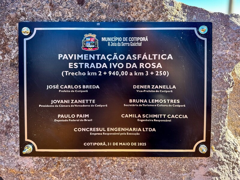 Na manhã do último sábado, dia 31 de maio, Cotiporã celebrou mais uma importante conquista com a inauguração de dois trechos de pavimentação asfáltica na Estrada Ivo da Rosa, que integra a Rota Turística Águas e Vales. A entrega fez parte do encerramento oficial da programação dos 43 anos de emancipação político-administrativa do município.