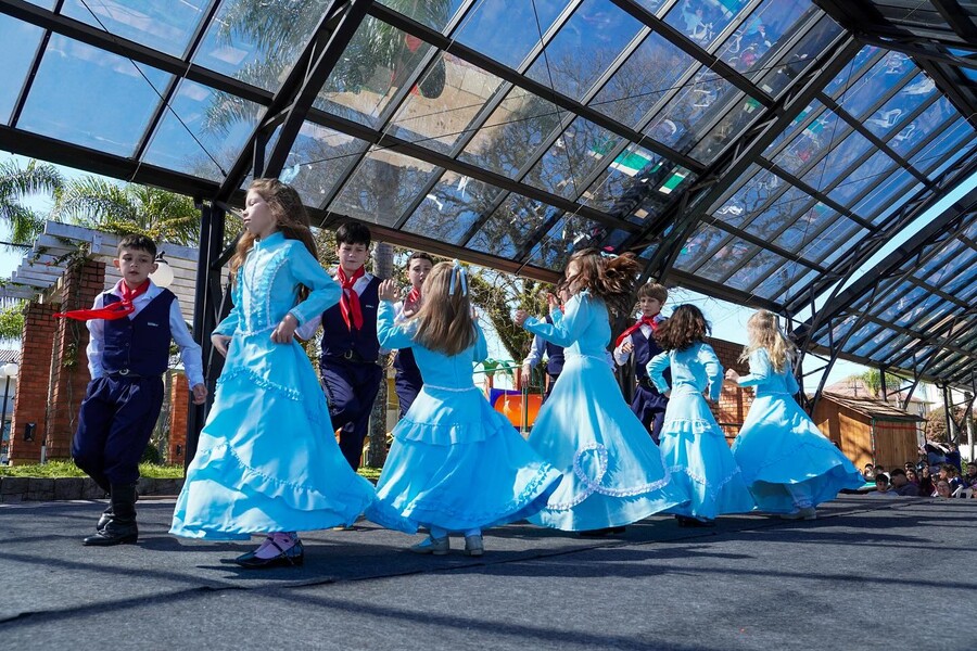 Já no dia 17, a Rua Coberta recebeu as turmas da manhã e da tarde da EMEF Caminhos do Saber para um dia cheio de vivências tradicionalistas. A programação contou com música, dança, apresentação da Invernada Pré-Mirim do CTG Pousada dos Carreteiros e dinâmica para aprender passos de dança. Após as atividades, os alunos saborearam o clássico pão com salsichão e participaram de uma gincana com perguntas de cultura geral, adivinhações de músicas e o desafio de cevar o mate.