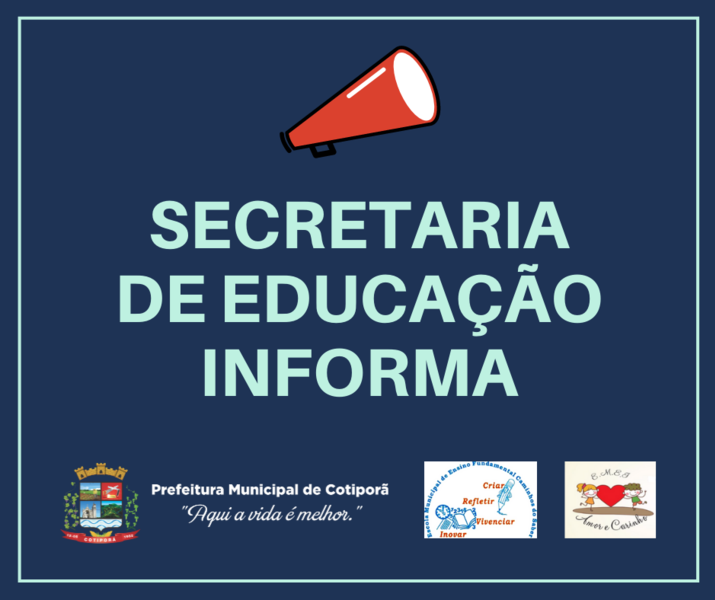 A Prefeitura Municipal através da Secretaria de Educação e Desporto e Equipe Diretiva das Escolas Municiais se colocam a disposição e solicitam que os pais acompanhem as informações que serão divulgadas durante o período.