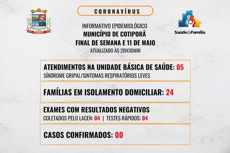 Com duas altas concedidas para pacientes em acompanhamento, 24 famílias realizam o isolamento domiciliar no momento.