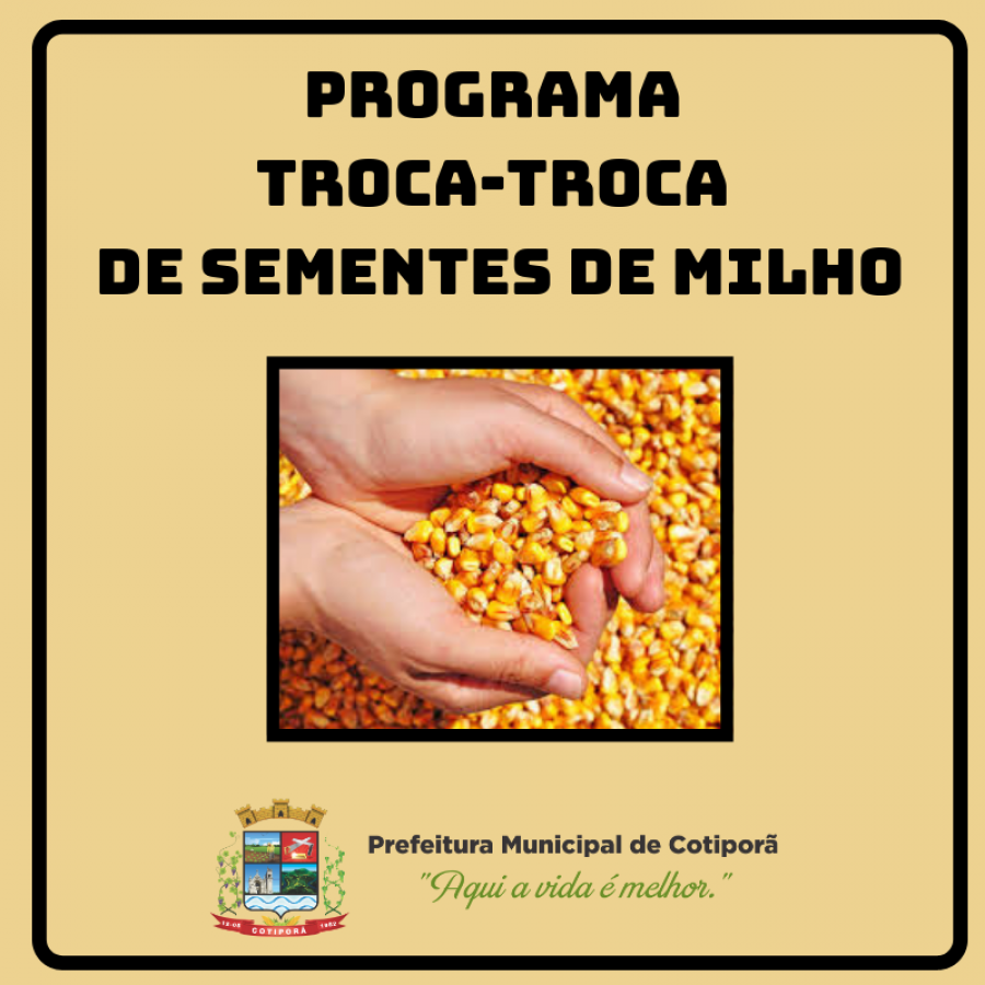 A Prefeitura Municipal através da Secretaria de Agricultura, Meio Ambiente, Indústria e Comércio comunica que a partir de hoje, dia 25 de maio de 2020, estão abertas as inscrições para o Programa Troca-Troca de Sementes de Milho safra 2020/2021.