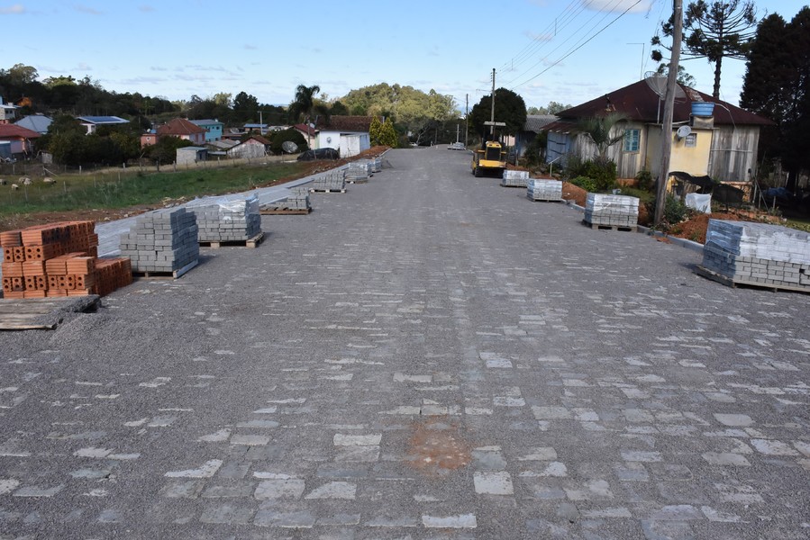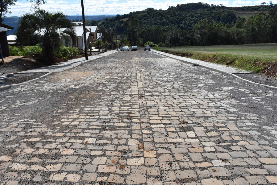Atualmente, sete ruas localizadas no perímetro urbano de Cotiporã estão recebendo os serviços de pavimentação em paralelepípedos e construção de passeio público em ambos os lados, com rampa de acessibilidade e piso tátil.