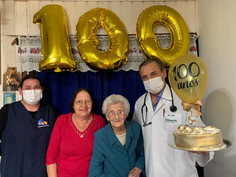 Buscando celebrar a vida e a saúde de Dona Catharina, bem como reforçar a importância dos cuidados preventivos contra a Covid-19, a Administração Municipal de Cotiporã, através da Secretaria de Saúde e Assistência Social, realizou uma singela homenagem à idosa e sua família.