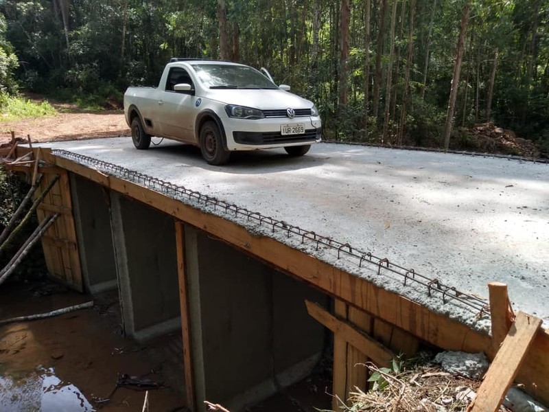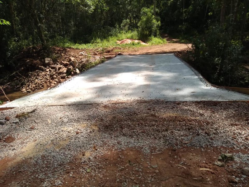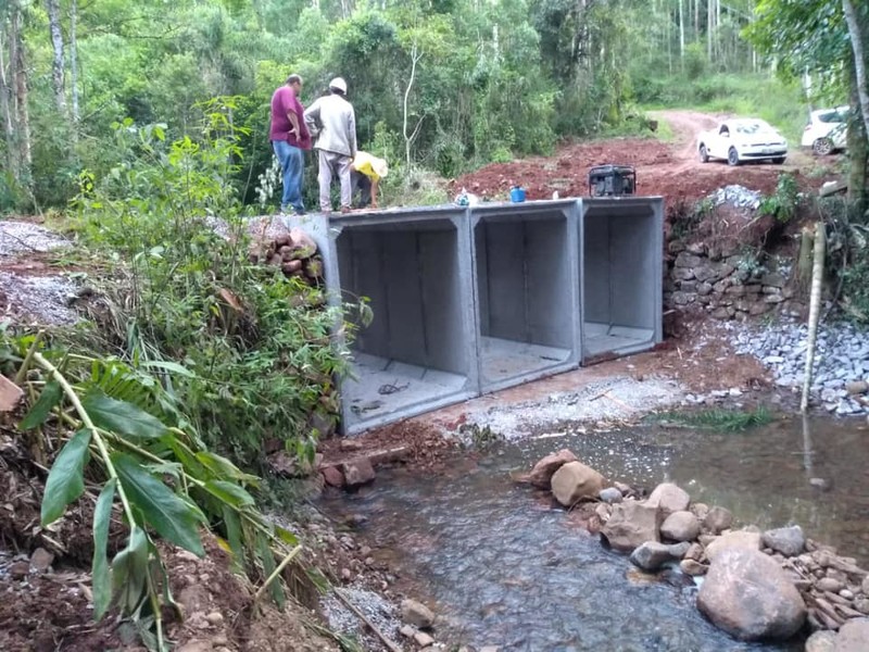 A substituição da ponte de madeira (última do município) por galerias de concreto pré-moldadas possibilita o acesso de maquinário pesado para as famílias da região.