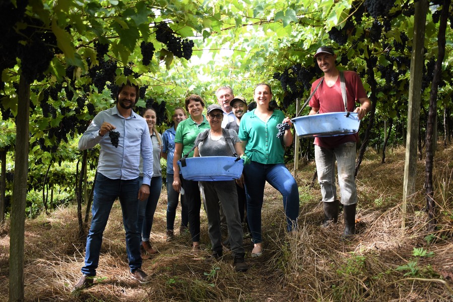 Nesta semana, o Prefeito Municipal Ivelton Mateus Zardo e a Vice-Prefeita Lenita Zanovello Tomazi visitaram e acompanharam a safra da uva em duas propriedades cotiporanenses: