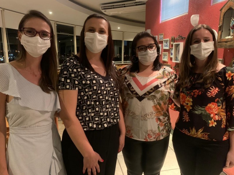 A Vice-Prefeita de Cotiporã, Lenita Zanovello Tomazi, juntamente com a Secretária de Turismo e Cultura, Patrícia Gabriel, Secretária de Administração, Joana Citolin e a Coordenadora de Turismo Bruna Tres participam da reunião, realizada no Restaurante Giratório de Veranópolis.