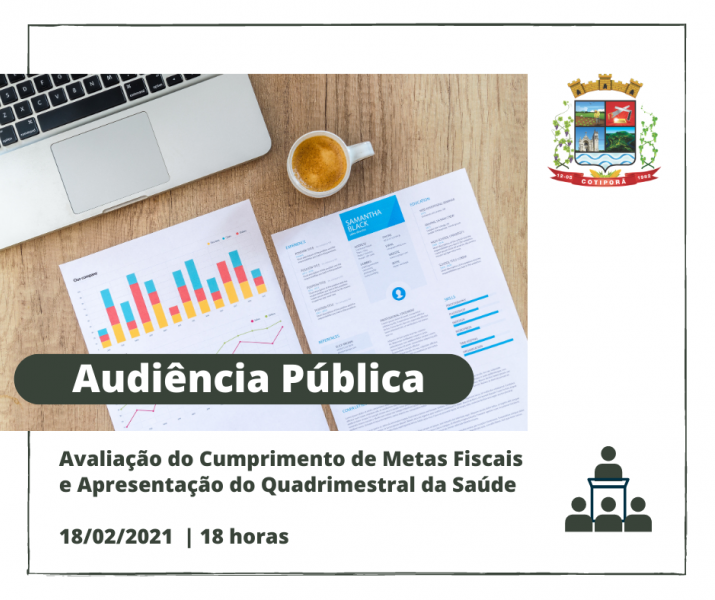 Nesta quinta-feira, dia 18 de fevereiro, como forma de transparência das ações do Executivo Municipal referente à destinação dos recursos públicos, será realizada a Avaliação do Cumprimento de Metas Fiscais e Apresentação do Quadrimestral da Saúde, ambos relativos ao 3º quadrimestre de 2020.