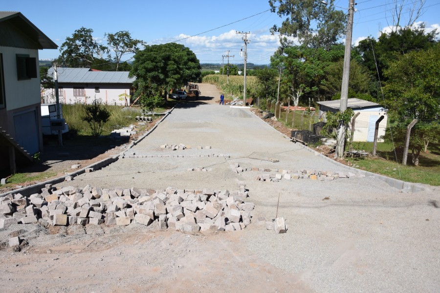 Além das obras de pavimentação que estão em fase final, como no acesso para a Comunidade de Santo Antônio e nas Ruas 25 de Julho e 12 de Maio, seguem os serviços de pavimentação na Rua Enrica Passianot Domingues (acesso ao Bairro Renovação). Com investimento superior a R$ 195 mil, o trecho, com extensão de 204,66m² receberá a pavimentação em paralelepípedos e passeio público em ambos os lados.