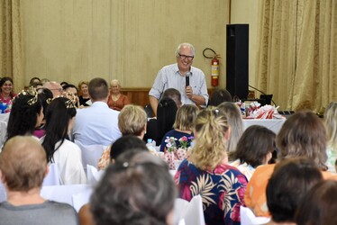 No dia 09 de março, sábado, mais de 400 mulheres se reuniram em comemoração ao Dia da Mulher, no Clube Juvenil. O evento contou com recepção às mulheres, reflexão com o Pároco Padre Gilberto Lazzarotto, palestra-show sobre “A força da mulher” com o Professor Adroaldo Lamaison, apresentação da Banda Acústico Farina Brothers, coquetel e sorteio de brindes. Confira AQUI o álbum completo.