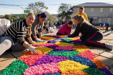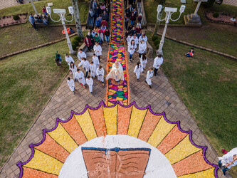 A tradicional confecção dos tapetes de Corpus Christi ocorreu na última quinta-feira, dia 16 de junho. Mais de 60 tapetes, que formaram um terço no entorno da Praça Matriz, foram desenvolvidos por entidades, empresas e escolas do Município de Cotiporã. O projeto teve como tema municipal: “Mãos que desenham a fé!”, ancorado pela Campanha da Fraternidade 2022. Além da confecção dos tapetes, foi realizada Missa na Igreja Matriz, celebrada pelo Pároco Padre Gilberto Lazzarotto, e procissão de Corpus Christi.