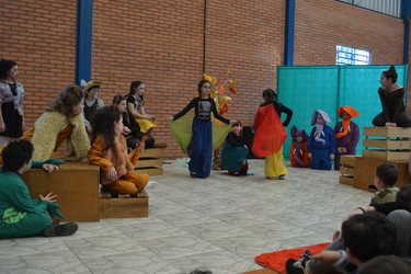 Buscado promover momentos de cultura, arte e diversão aos alunos, na última segunda-feira, dia 23 de setembro, a Escola Municipal de Educação Infantil Amor e Carinho contou com a apresentação da peça teatral “Bicho Folhagem” interpretada pelo grupo infantil da Cia Teatral “Tem Gente No Palco”, de Veranópolis. A peça foi baseada na história “O Bicho Folhagem” do livro “Histórias da menina da Rua da Ponte”, escrito por Adelsin. Os pequenos artistas trouxeram de forma lúdica, temas como comportamento, caráter e convívio em harmonia.