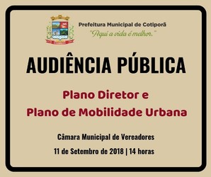 Plano Diretor e Plano de Mobilidade Urbana serão discutidos em Audiência Pública