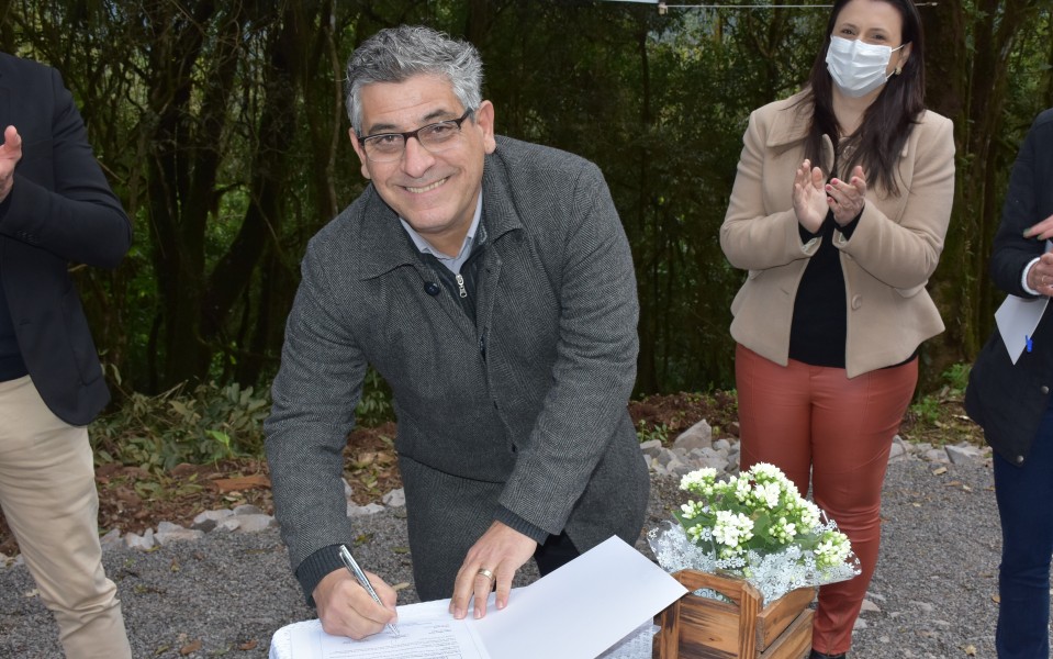 Na oportunidade, o Prefeito Ivelton Mateus Zardo, Vice-Prefeita Lenita Zanovello Tomazi, Presidente da Rota Turística e Secretária de Turismo e Cultura, Patrícia Gabriel, demais secretários, Presidente da Câmara de Vereadores, Ivaldino Frizon, demais vereadores e servidores públicos, juntamente ao Deputado Nereu e autoridades regionais, realizaram a Assinatura da Ordem de Início das Obras de pavimentação de mais dois quilômetros da via, que contam com recursos provenientes do Deputado Nereu Crispim.