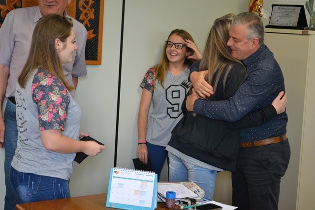 As alunas Darlene Picoli, Helen Siviero e Maikelen Conte, acompanhadas pela Diretora da Escola Caminhos do Saber Fabiane Brunoni e Secretária de Educação e Desporto Elizabete Ramansini, convidaram Breda e Ivaldo para participarem da cerimônia de formatura a se realizar no dia 14 de dezembro, às 19h30min no galpão do CTG Pousada dos Carreteiros, com a formação de mais de 20 alunos.
