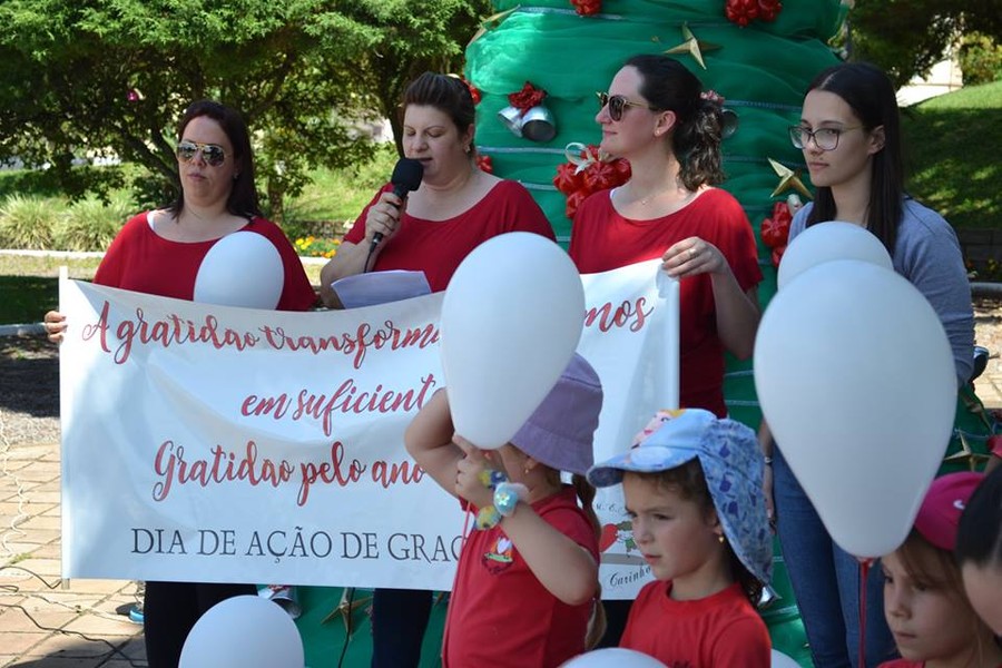Como forma de agradecer as conquistas de 2018, os alunos, equipe diretiva, professores e funcionários da Escola Municipal de Educação Infantil Amor e Carinho realizaram uma caminhada para celebrar o Dia de Ação de Graças. Na data, as pessoas se reúnem para agradecer, dando graças a Deus pelas bênçãos recebidas durante o ano.