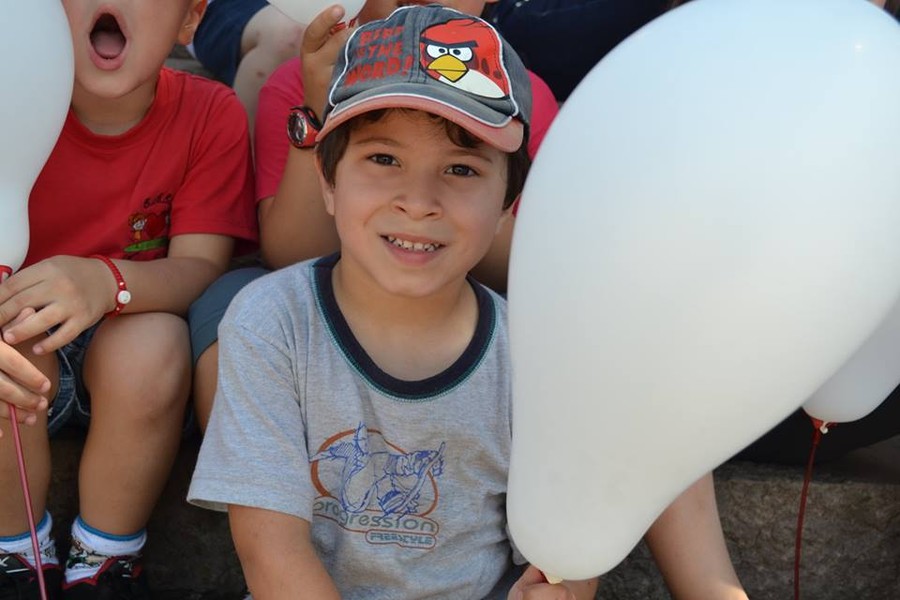 Portando balões brancos, os alunos realizaram a caminhada até a Praça Maurício Cardoso, no centro do município.