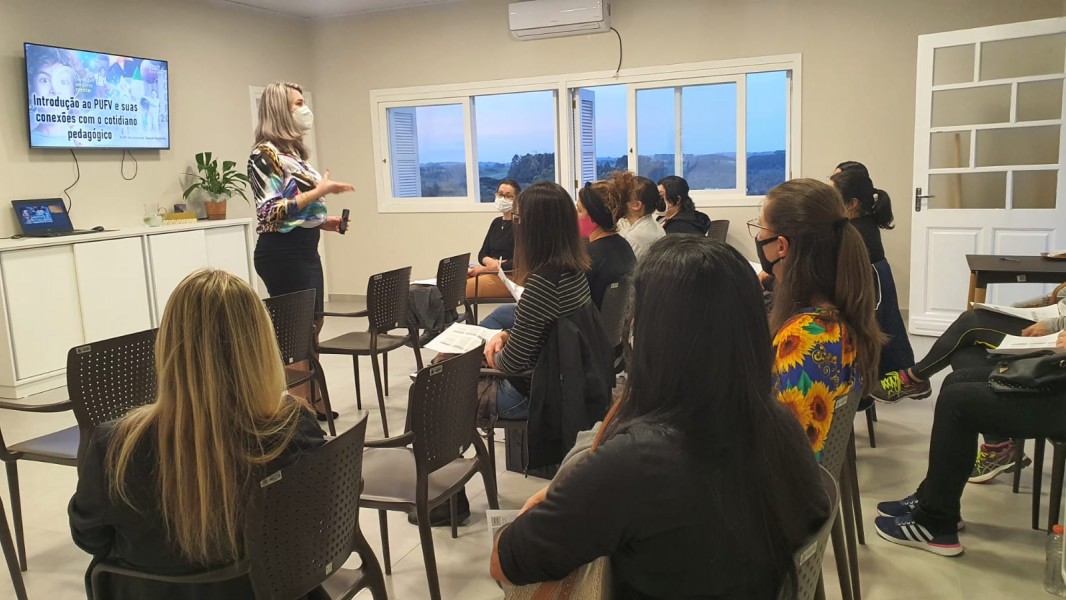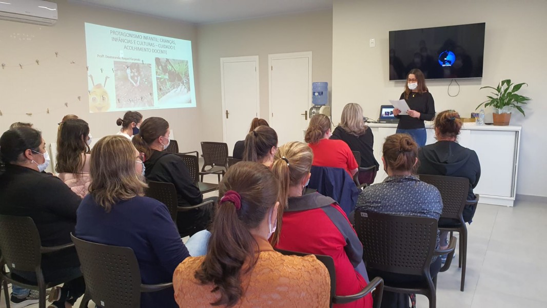 Os encontros, realizados nos dias 31 de agosto e 01 de setembro, no espaço “Vida e Saúde”, foram ministrados pela Professora e Doutoranda Raquel Karpinski. O tema da formação do dia 31 foi "O Protagonismo Infantil: Crianças, Infâncias e Culturas - Cuidado e Acolhimento Docente", destinada aos professores da Educação Infantil, 1º Ano, 2º Ano e 3º Ano do Ensino Fundamental. Já no dia 01/09, o tema abordado foi "Introdução ao Projeto União Faz a Vida e suas conexões com o cotidiano pedagógico", contando com a participação dos professores que atendem o 4º Ano, 5º Ano e Anos Finais do Ensino Fundamental.
