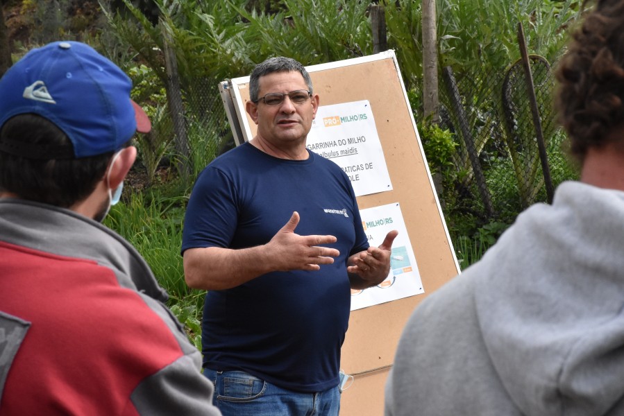 Na ocasião, o Engenheiro Agrônomo, João Villa, da Emater/RS-ASCAR Regional de Caxias do Sul, demonstrou aos agricultores a cigarrinha-do-milho, orientando sobre a correta identificação da mesma, bem como sobre o monitoramento e alternativas disponíveis para redução da incidência da praga nas lavouras. Já o Engenheiro Agrônomo, João Carlos Reginato, da Emater/RS-ASCAR de Nova Prata, ressaltou aos agricultores a importância de realizar análises de solo periodicamente e efetuar de acordo com estas, a correção e adubação do solo.