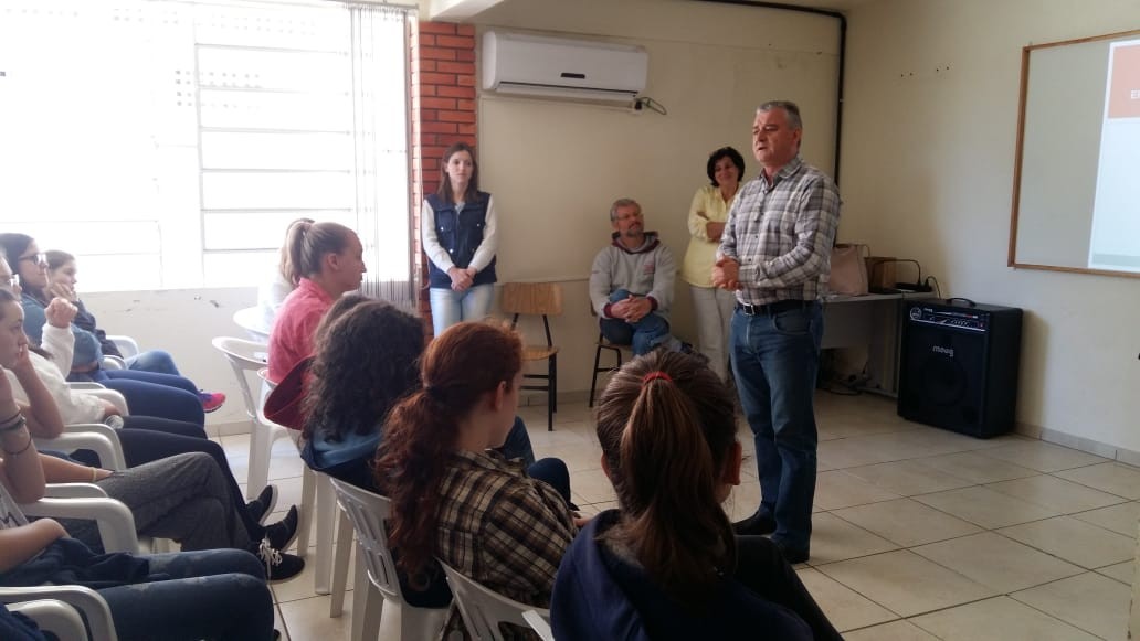 Na ocasião, o Professor Arnaldo Poletto e a Diretora Sonia Beatriz Sbersi apresentaram a metodologia da escola de ensino médio com técnico em agropecuária. Segundo o Prefeito Breda, a reunião foi realizada para apresentar diferentes propostas de ensino aos alunos e possibilitar o esclarecimento de dúvidas e conversa sobre o tema.