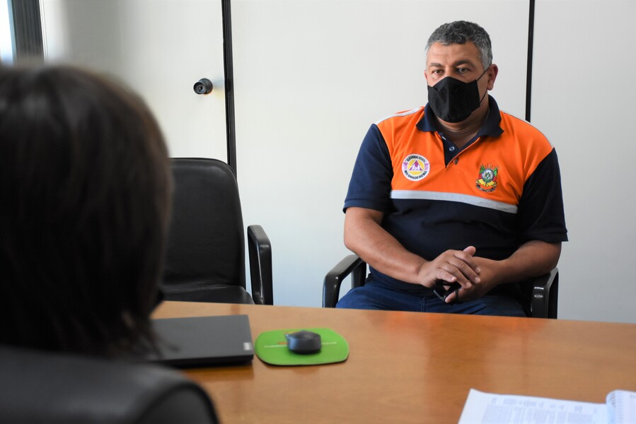 A fim de contribuir com os processos para garantir que Cotiporã seja reconhecida em situação de emergência, o Tenente Coronel Sandro Carlos Gonçalves, representante da Coordenadoria Regional de Defesa Civil de Caxias do Sul, esteve no Centro Administrativo de Cotiporã, na tarde de ontem (13).