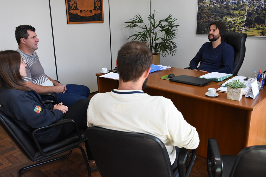 Nesta semana, o Prefeito Ivelton Mateus Zardo, recebeu em seu gabinete a Chefe do Escritório da Emater de Cotiporã, Jéssica Zalamena, Presidente da Ecovêneto, Fabio Celant Marcon, e o Técnico Agrícola, Volmir Campagnollo.