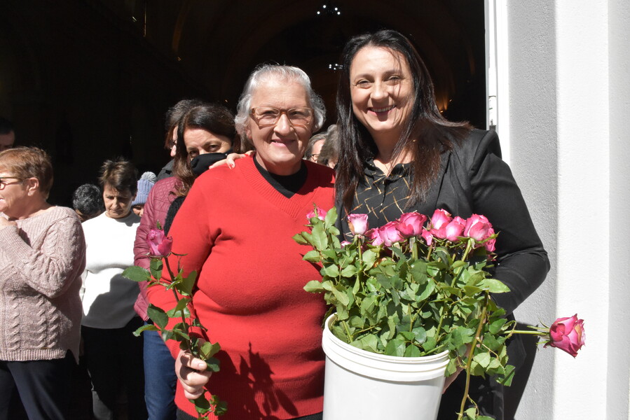 O Prefeito Ivelton Mateus Zardo e a Vice-Prefeita Lenita Zanovello Tomazi realizaram a entrega de rosas para as mães que organizaram e participaram do evento religioso.
