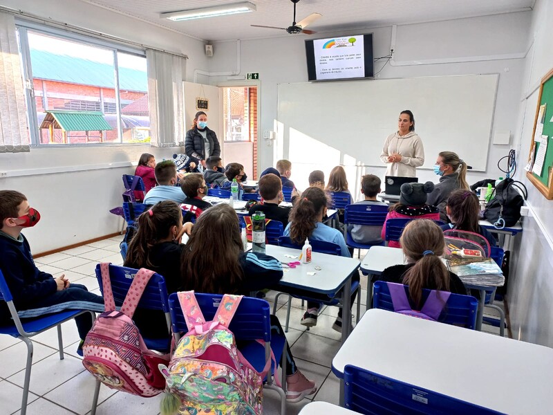 Neste mês de junho, a Secretária Municipal da Fazenda, Elisandra Scussel, acompanhada pela Fiscal, Adriana Bin, ministraram uma conversa sobre “Tributos” com os estudantes, ampliando as atividades desenvolvidas no projeto escolar “Cidadão Consciente”. Os discentes foram acompanhados pelas professoras titulares Adriana Maria Pellizzari Cenci e Nádia Farias de Marco.