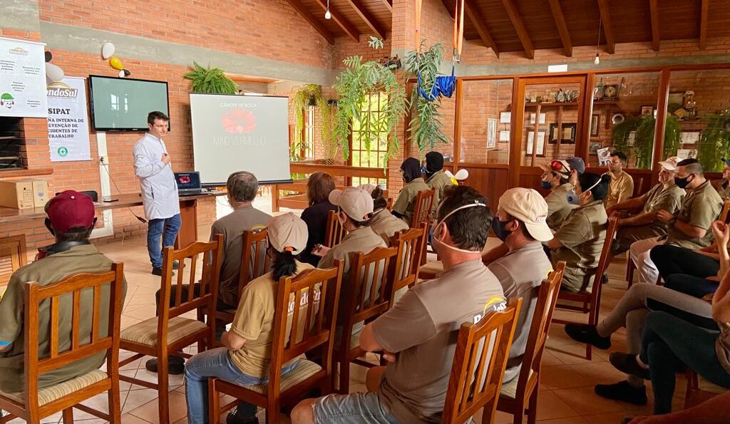 Já no dia 28 de julho, os trabalhadores receberam o Dentista da Unidade Básica de Saúde, André Benedetti, o qual falou sobre o câncer de boca, principais sintomas, características e fatores de risco. André ressaltou a importância dos cuidados com a saúde bucal e saúde em geral, salientando que o diagnóstico precoce das doenças é fundamental para o sucesso do tratamento.