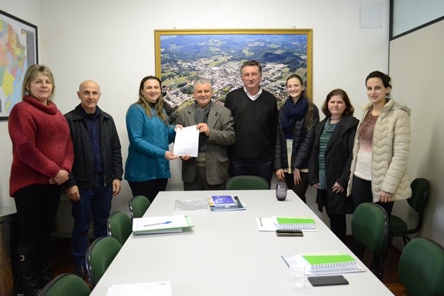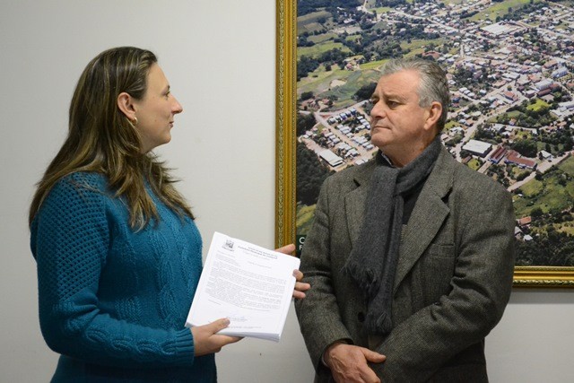 Na quinta-feira (23), durante reunião com os Secretários Municipais, o Prefeito José Carlos Breda e a Secretária da Fazenda Elisandra Scussel entregaram o Projeto de Lei com as Diretrizes Orçamentárias, referente ao exercício de 2019, para a Presidente da Câmara de Vereadores, Lenita Zanovello Tomazi.
