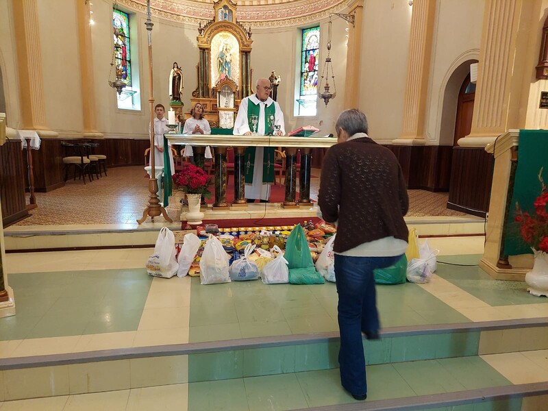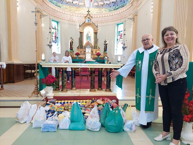 Neste sentido, a Paróquia Nossa Senhora da Saúde, de Cotiporã, convidou a comunidade local para participar de uma campanha voluntária e generosa. Durante as celebrações realizadas nos dias 12 e 13 de novembro, na Igreja Matriz, os cotiporanenses doaram alimentos não perecíveis, os quais foram recebidos pelo Pároco Padre Gilberto Lazzarotto, em frente ao altar.