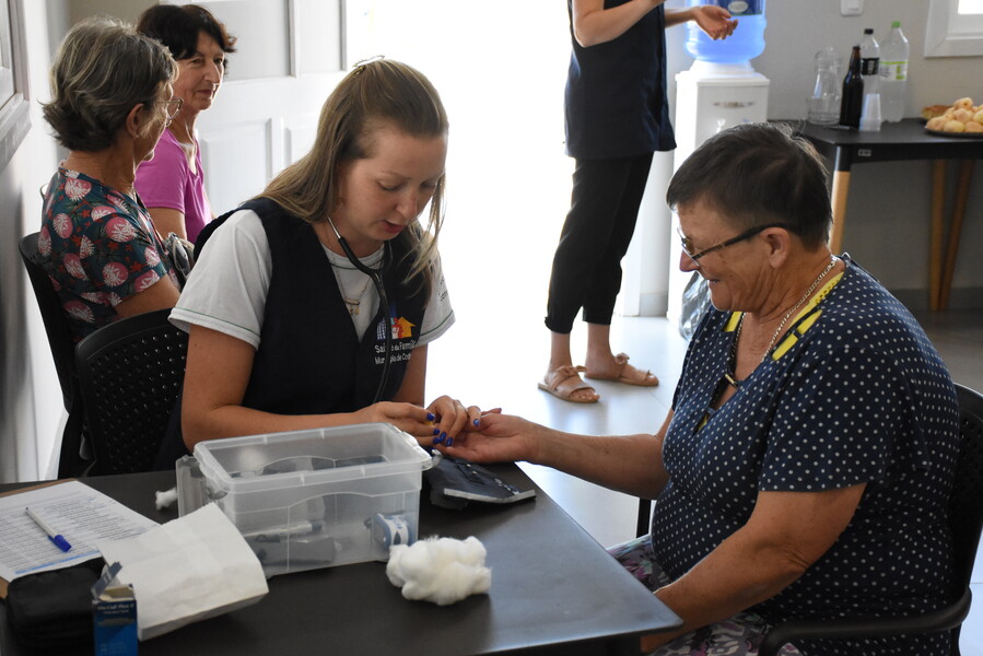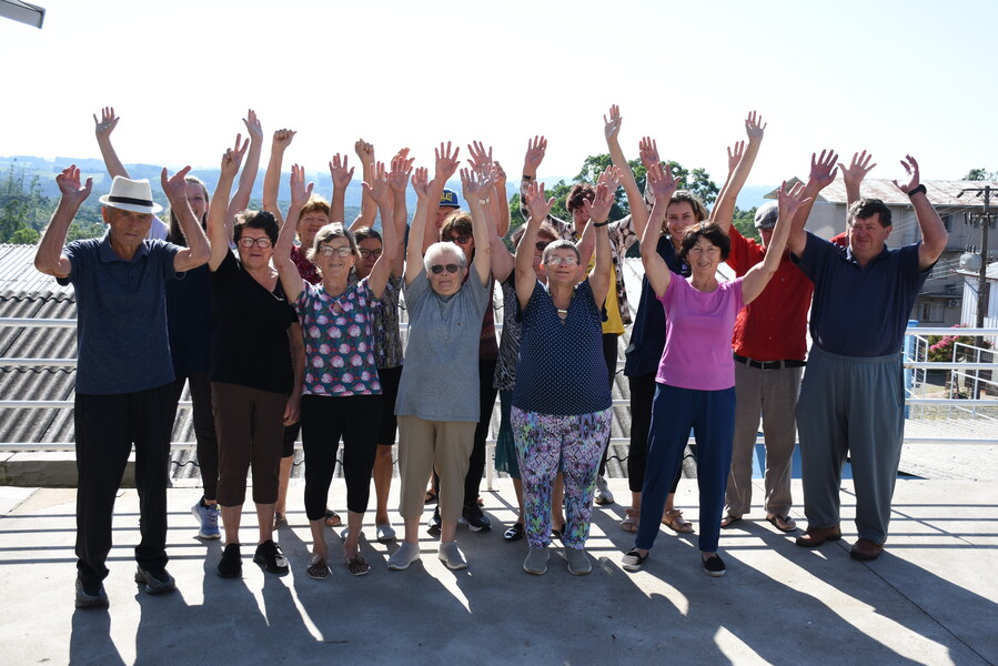Ainda, verificaram a pressão e a glicemia em jejum, realizaram um lanche em conjunto e, após, foram conduzidos na execução de alongamentos e atividades físicas ao som de música e também ao ar livre.