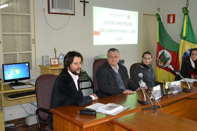 Como forma de transparência das ações do Executivo Municipal, aconteceu na última terça-feira (22) a audiência pública para discussão e elaboração da Lei de Diretrizes Orçamentárias para o ano de 2018. A audiência foi conduzida e apresentada pelo Prefeito Municipal José Carlos Breda, Secretária da Fazenda Elisandra Scussel e auxiliar de contabilidade Letícia Penso, os quais juntamente com a população, discutiram e definiram a destinação dos recursos públicos do município.