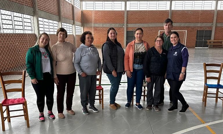 A fisioterapeuta Luana Morais Giacomini e a nutricionista Gabriela Nespolo, acompanhadas pela Secretária Municipal de Saúde e Assistência Social Rozeli Frizon e pelo Agente Comunitário de Saúde André Nicolao, estão assessorando os munícipes para uma melhor qualidade de vida.