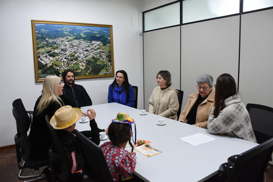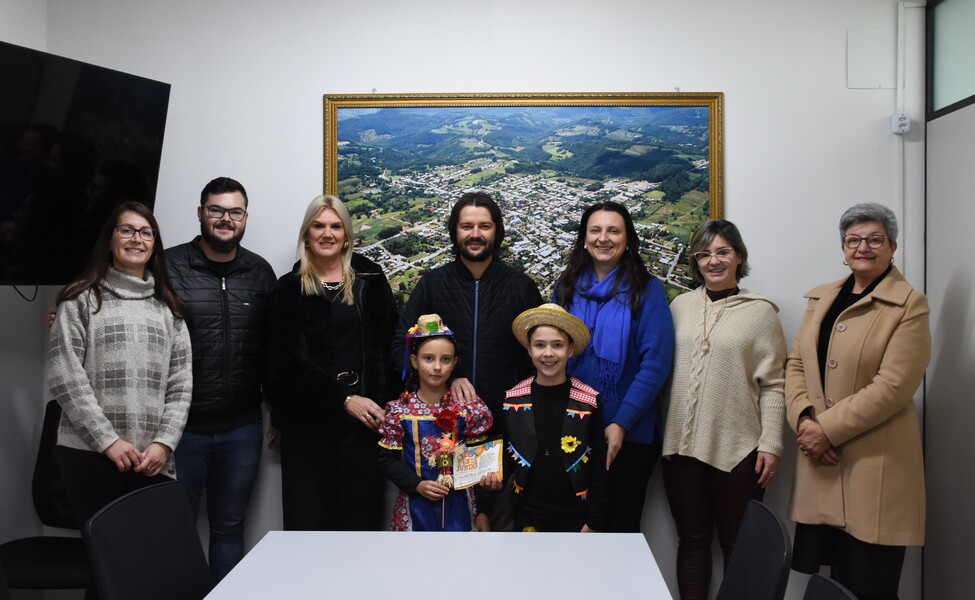 Na ocasião, estiveram no nosso Centro Administrativo a Vice-prefeita Sandra Zottis, a Secretária de Educação Loreni Aparecida Schaeffer Tonin e a Secretária de Turismo, Cultura, Esporte e Lazer Veridiana Ciotta. Além disso, estavam encantando e abrilhantando a visita dois pequenos caracterizados na temática proposta alusiva a comemoração de São João Batista, santo padroeiro do município.