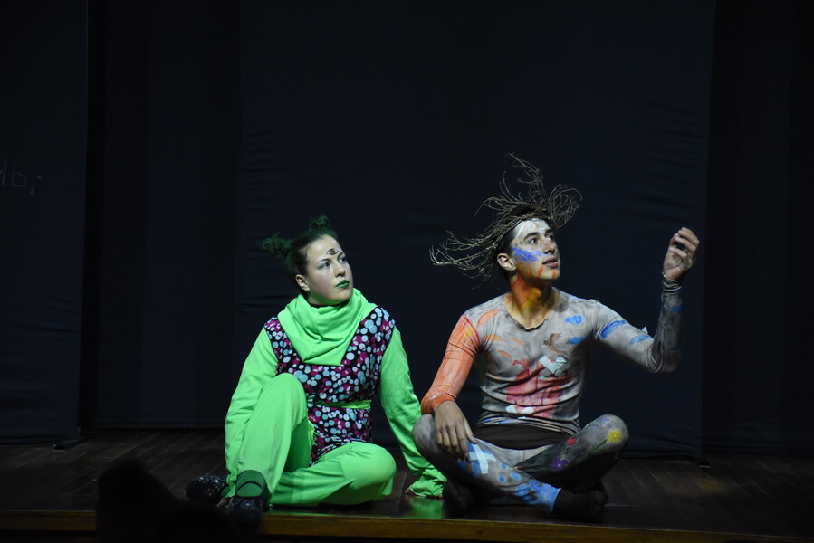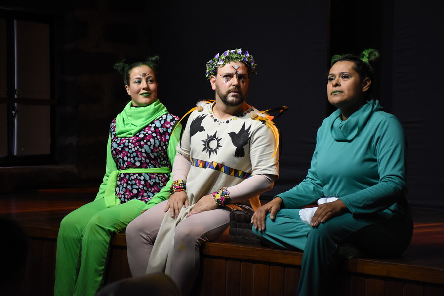 A Companhia de Teatro Arte in Cena apresentou, ontem (12), a peça “Ayê, a rã de três olhos” para as turmas da E.M.E.F. Caminhos do Saber.