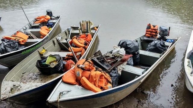 Ao todo, foram recolhidos mais de 300 quilos de resíduos sólidos, plásticos, pneus, metais, redes e armadilhas de pesca. O material foi separado e destinado para reciclagem.