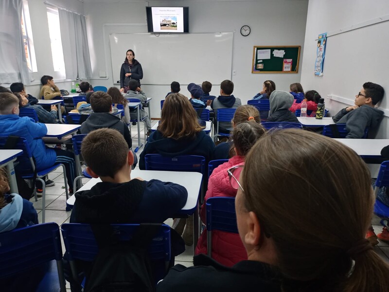 Após a leitura do gibi 4 “Turma da Mônica em: formas de economizar.” surgiram os assuntos “Nota Fiscal” e “CPF na Nota”. Para explicar melhor sobre os mesmos, os alunos participaram de um encontro com a Secretária Municipal da Fazenda, senhora Elisandra Scussel. Ela tirou todas as dúvidas sobre os assuntos estudados e muitos outros, como os tipos de impostos e o destino dos mesmos.