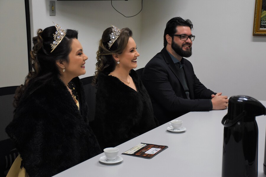 A Vice-prefeita Lenita Zanovello Tomazi e o Secretário de Turismo e Cultura Thomas Franco Tres receberam a Vice-prefeita de Nova Prata Sandra Zottis, o Presidente da 4ª Expo Prata e 3ª Agro Feira Sicredi Thiago Giaretta, e as soberanas do evento, princesas Andressa Pereira Gonçalves e Taciane Zanella.
