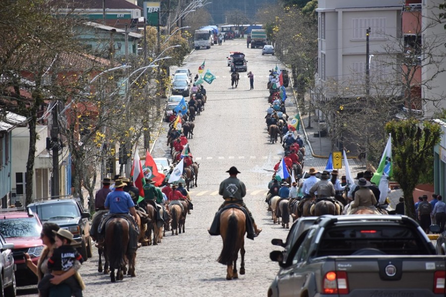 Os campeiros foram recepcionados na Praça Maurício Cardoso pelo Prefeito Breda e sua equipe, Patrão do CTG Pousada dos Carreteiros André Tres e comunidade cotiporanense.
