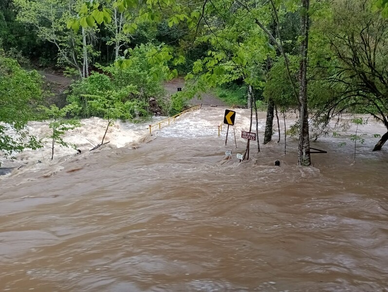 Pontes municipais de menor porte, mas que dão acesso às comunidades do interior, também estão submersas.