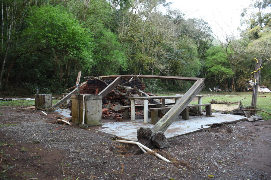 • Perda de aproximadamente 200 metros de asfalto na Estrada Ivo da Rosa, na Rota Turística Águas e Vales, no trecho próximo à ponte do Rio Carreiro;