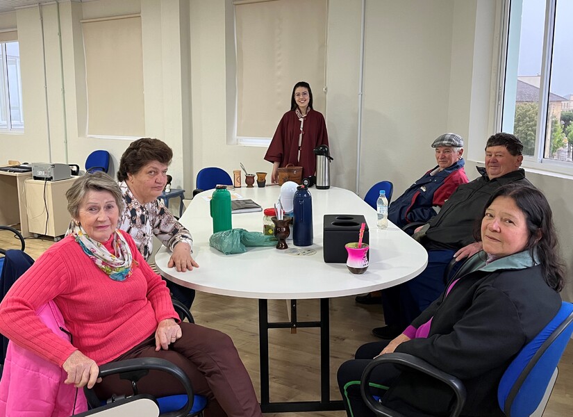 Por isso, no encontro que ocorreu hoje (13), pela manhã, a atividade contou com a explanação dos benefícios de ingerir a infusão, bem como uma breve retomada histórica e cultural deste costume. Realizou a atividade, junto com a fisioterapeuta Luana Moraes Giacomini e a nutricionista Gabriela Nespolo, a prenda Táila Bergamin Kemerich.