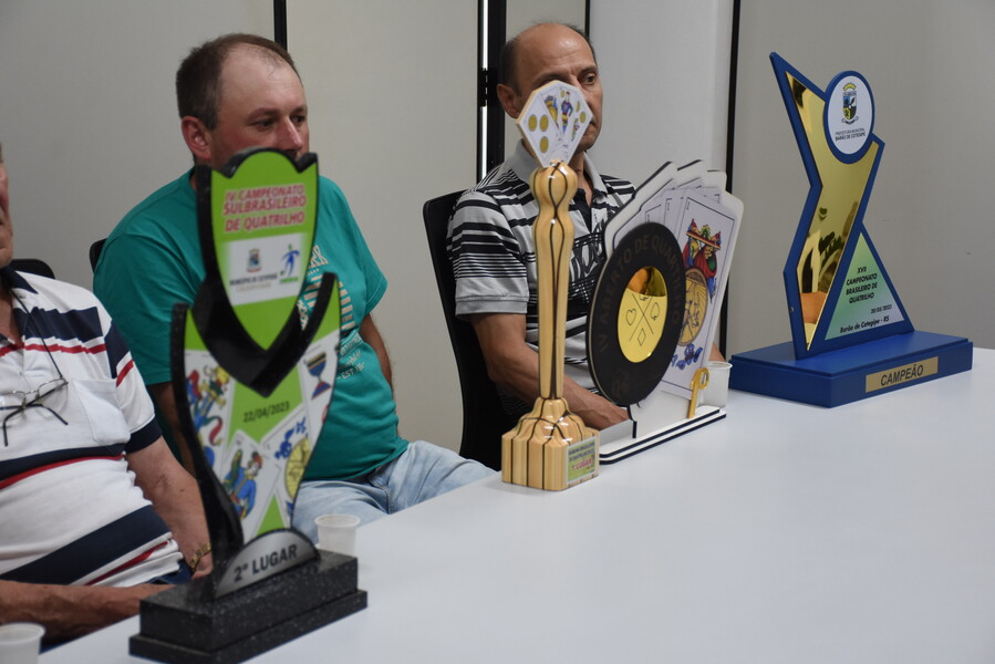 Na tarde de ontem (26), o Prefeito Ivelton e a Vice-prefeita Lenita, juntamente com o Secretário de Agricultura, Meio Ambiente, Indústria e Comércio Ivaldo, receberam os jogadores de quatrilho de Cotiporã.