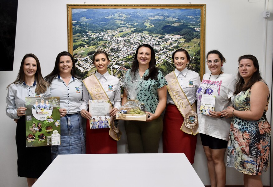 A Soberanas, Princesas Eduarda Baggio e Raíssa Filippi Chiella, juntamente com a Vice-presidente da festa Kelen e da representante da Comissão Social Sibeli, realizaram o convite no Centro Administrativo, junto à Prefeita em Exercício Lenita Zanovello Tomazi, à Secretária de Administração em Exercício Daiane Nicolao Rebelato e à Coordenadora de Turismo Bárbara Roberta Scarton.
