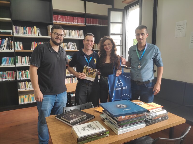 Em fevereiro, o Gerente do Banrisul Edmilson Machado e o Gerente adjunto Alexandre Giordani realizaram a entrega dos livros.