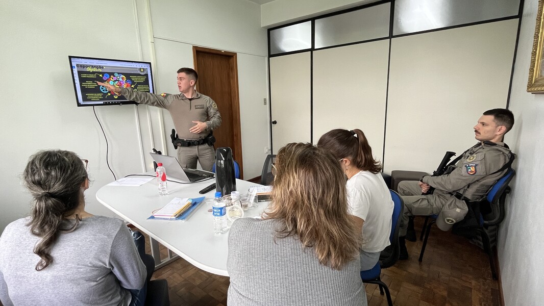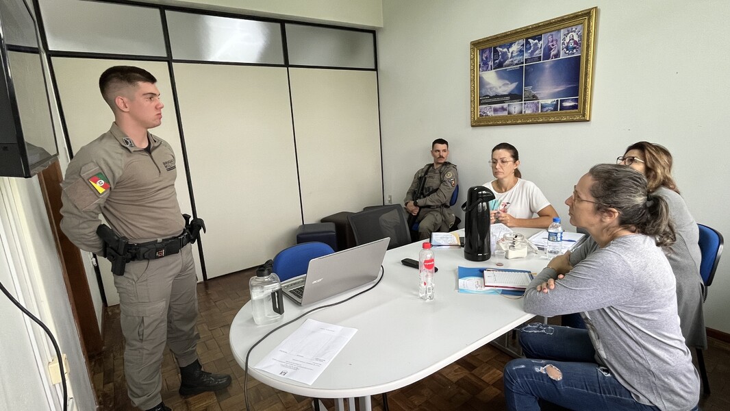 Na ocasião foi debatido o assunto da segurança nas escolas junto ao Soldado Gabriel de Oliveira, este que estava acompanhado pelo Soldado Handrio Blanco, ambos representantes da Brigada Militar de Cotiporã.