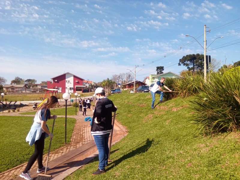 Os jovens desenvolveram serviços como limpeza, plantio de flores e demais melhorias na Quadra Poliesportiva junto a Escola Municipal Caminhos do Saber, localizada na Rua Pedro Breda. Ainda, aproveitaram a manhã para podar as hortências na ciclovia junto a ERS 359.